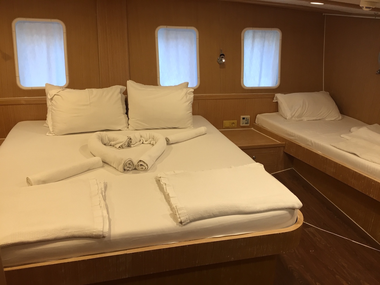 S/Y OGUZBEY measures 34m/105ft and offers contemporary accommodation for 22 charter guests across 8 en-suite cabins, with a professional crew of six for exceptional service. In 2022 she was lengthened to add a swim ...