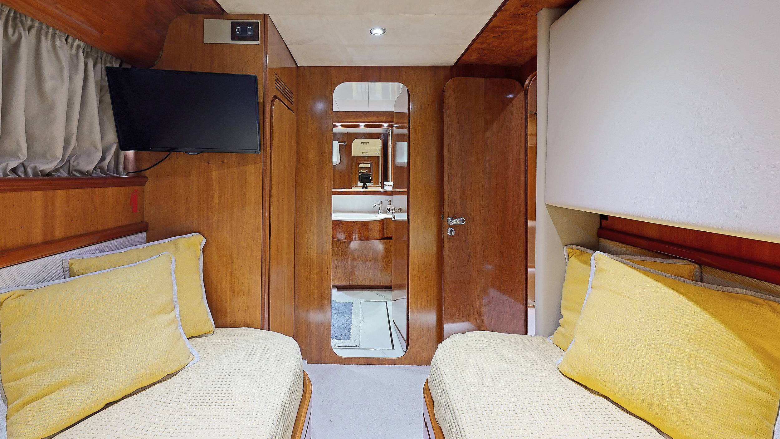 With an overall length of 36,58m (120ft), the yacht offers 6 spacious cabins, for up to 12 charter guests. Her interior design is the work of Cantieri Navali Rizzardi and her exterior styling is by Carlo Galeazzi.
