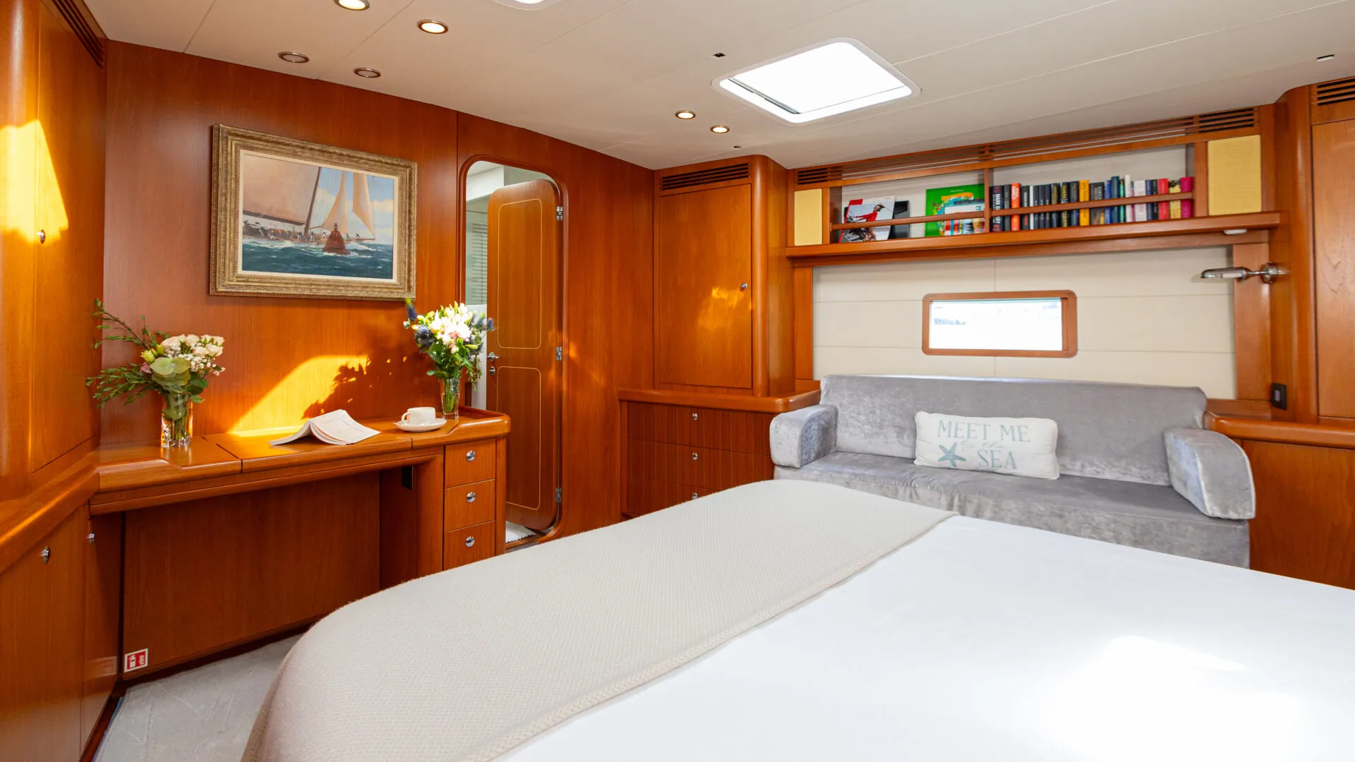 Being designed by Bruce Farr, built of carbon fiber, it is easy to see that she will have superior sailing performance. This is not to mean comfort and stability have been compromised and the yacht has a large saloon, 10 seat dining area and separate lounging cockpit for cruising bliss.