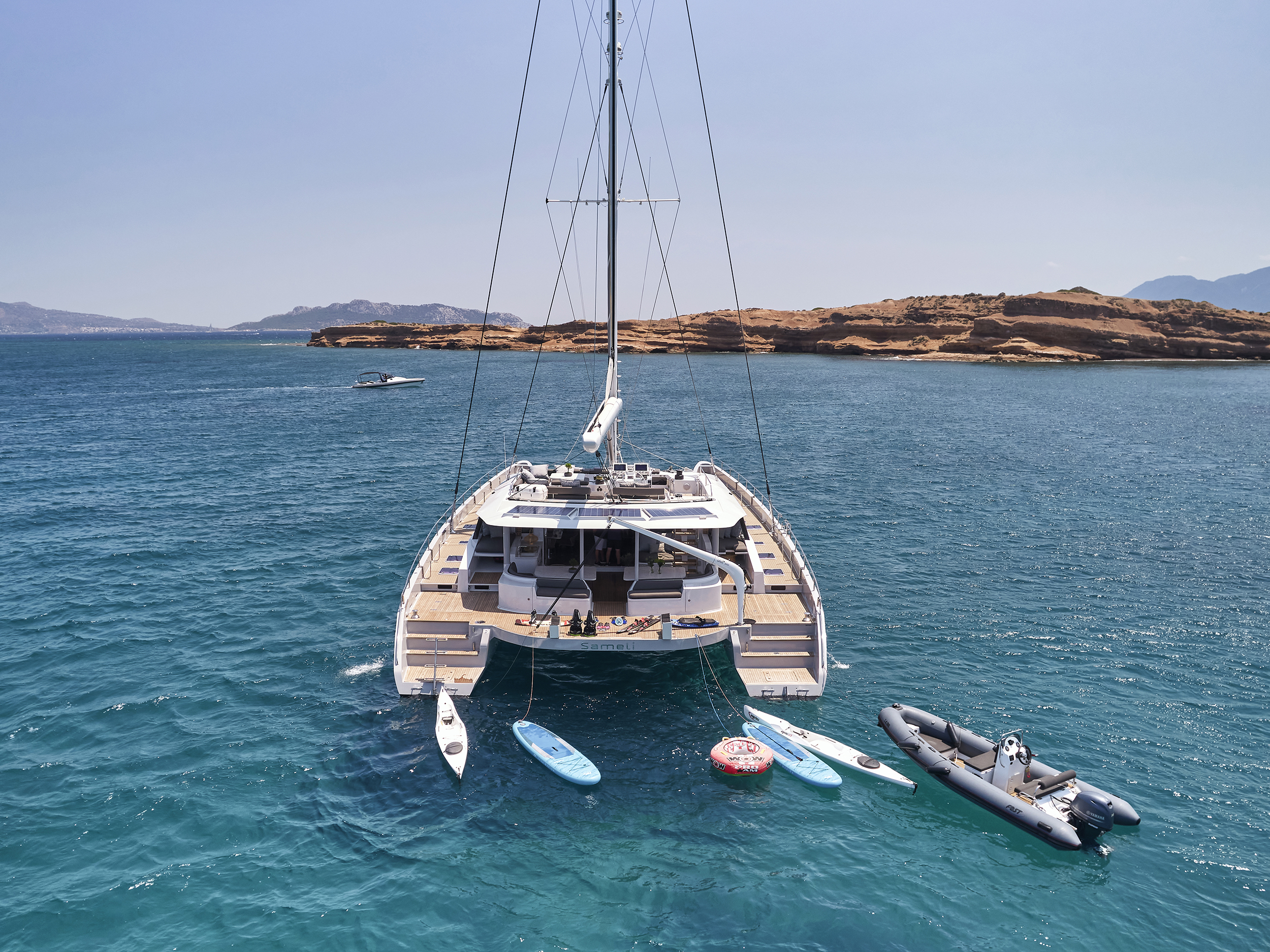 The 23m sailing catamaran yacht SAMELI (ex SKIMMER) emerged in 2016 from the cutting-edge South African shipyard, Two Oceans Marine, engineered for transoceanic performance and top speed without sacrificing luxurious accommodation for 10 guests in 5 cabin and sumptuous living spaces.