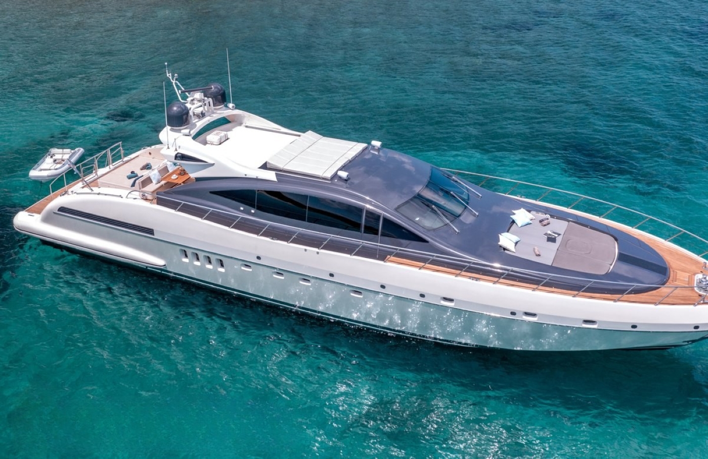There are also more sun pads on both the roof and on the main deck aft. The main deck aft is also the setting for al fresco dining around the table plus access down to the swim platform at the water’s edge.