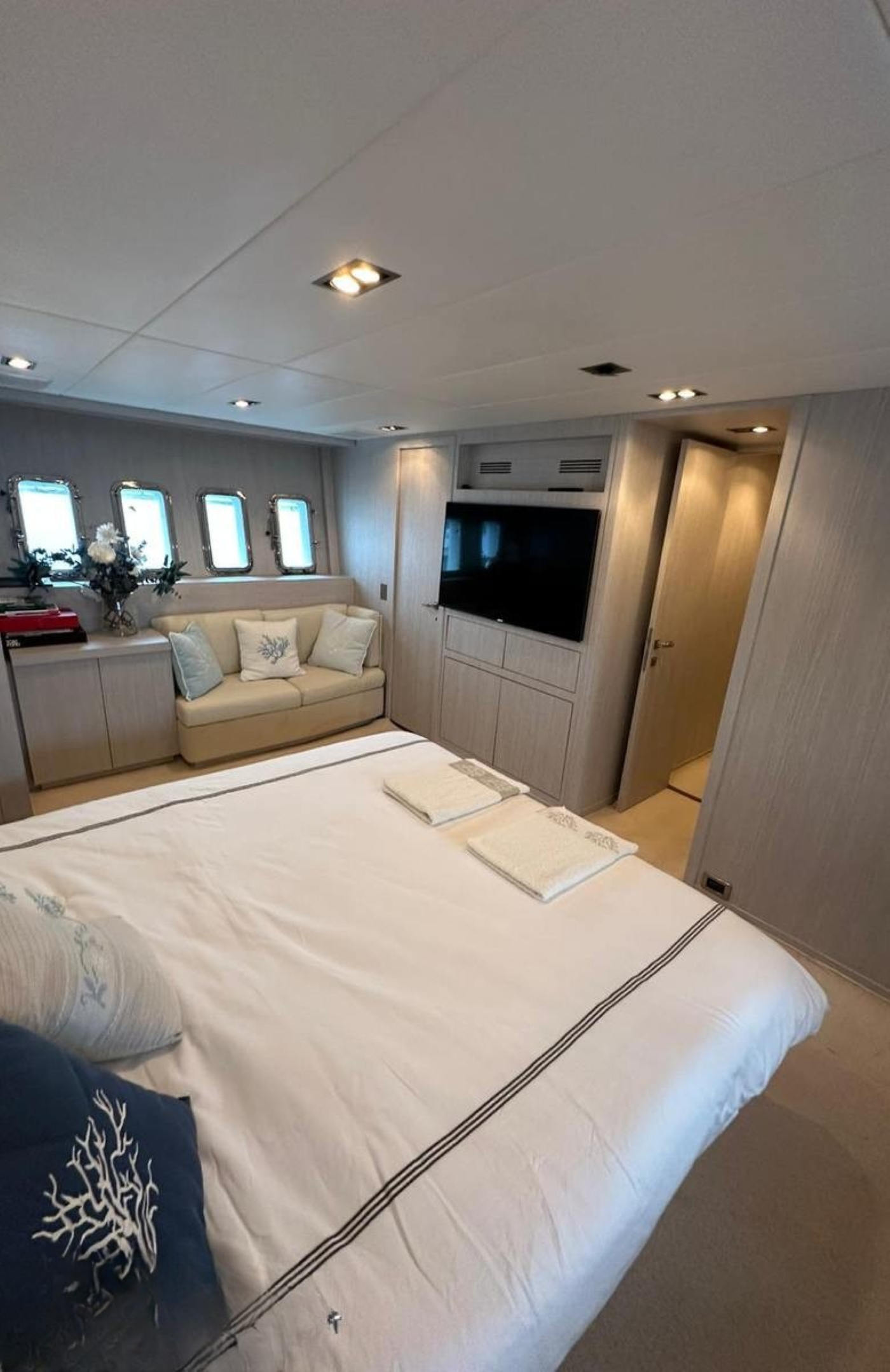 The master cabin also features an LCD TV, DVD player, hi-fi system with ipod, and a Sat connection. There are 3 further cabins, including a 2 VIP suites with Queen size / double bed, ensuite bathroom, LCD TV, DVD player, hi-fi system with ipod.