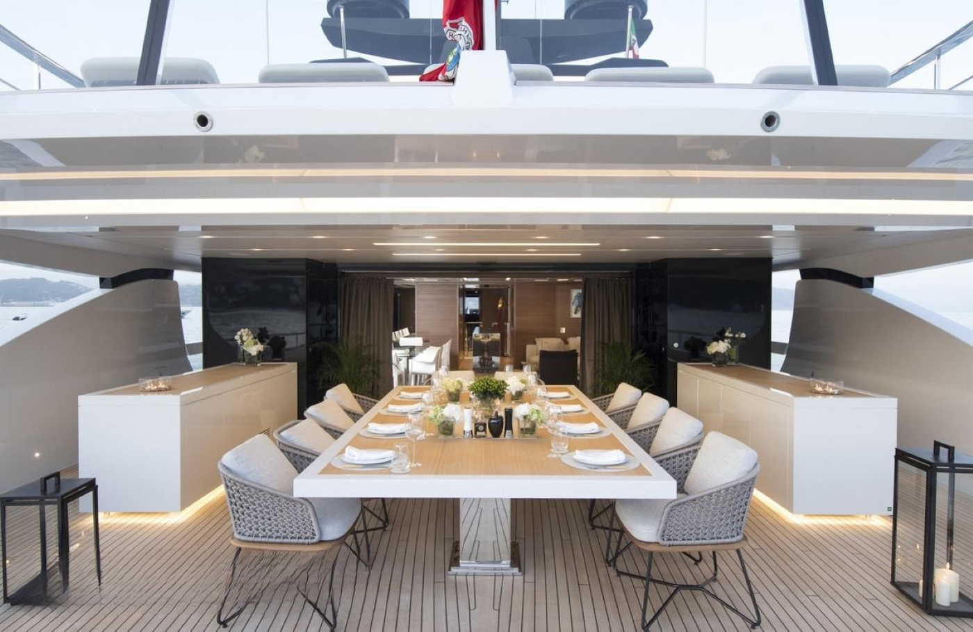 Her distinctive exterior is a work of Officina Italiana Design. Launched in 2017, the yacht offers accommodation in 5 spacious cabins, for up to 10 charter guests. She has a crew of 11. She was refitted in 2024.