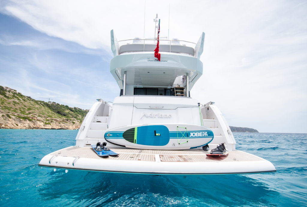 NOTABLE FEATURES OF ADRIANO: ~ Top speed of 30 knots ~ Plenty of alfresco lounging spots ~ Light-filled guest accommodation ~ Air conditioning ~ Wi-fi