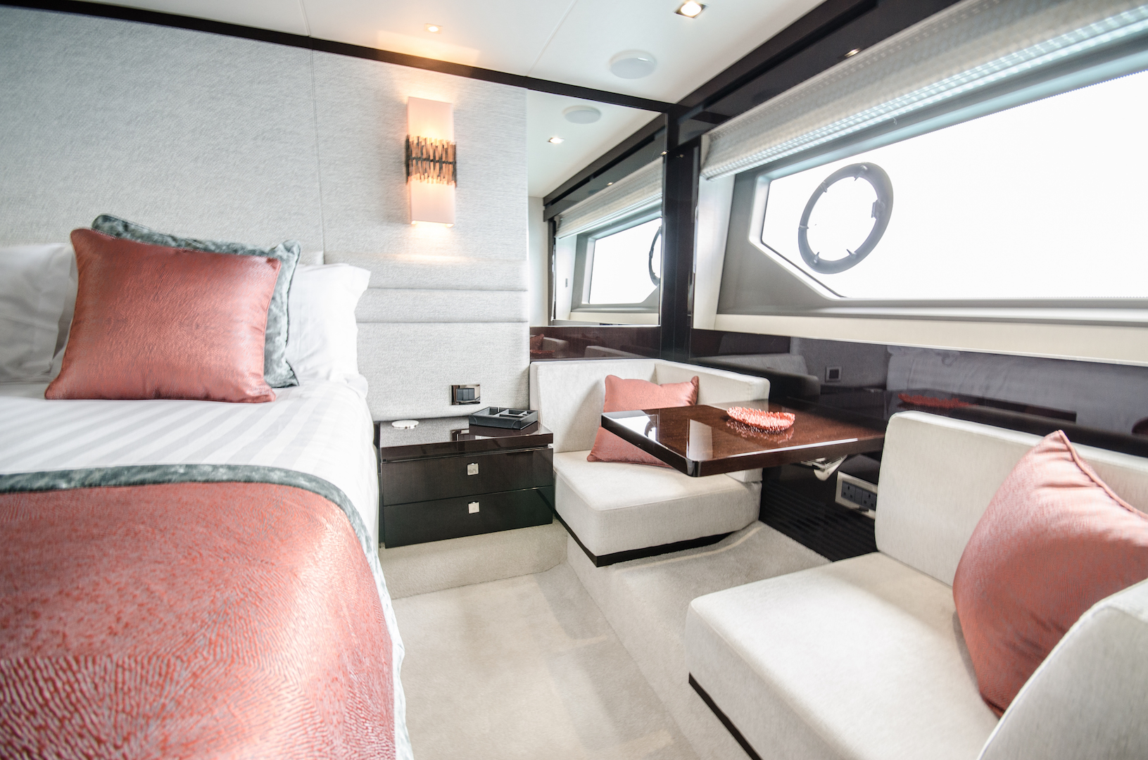 NOTABLE FEATURES OF ADRIANO: ~ Top speed of 30 knots ~ Plenty of alfresco lounging spots ~ Light-filled guest accommodation ~ Air conditioning ~ Wi-fi