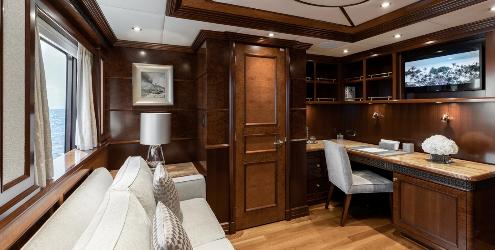 While dining on board, one can choose elegance and grace in the yacht’s enclosed dining room or a more relaxed alfresco dining experience on the air-conditioned aft exterior main deck, the aft exterior pilothouse deck or on the sundeck.