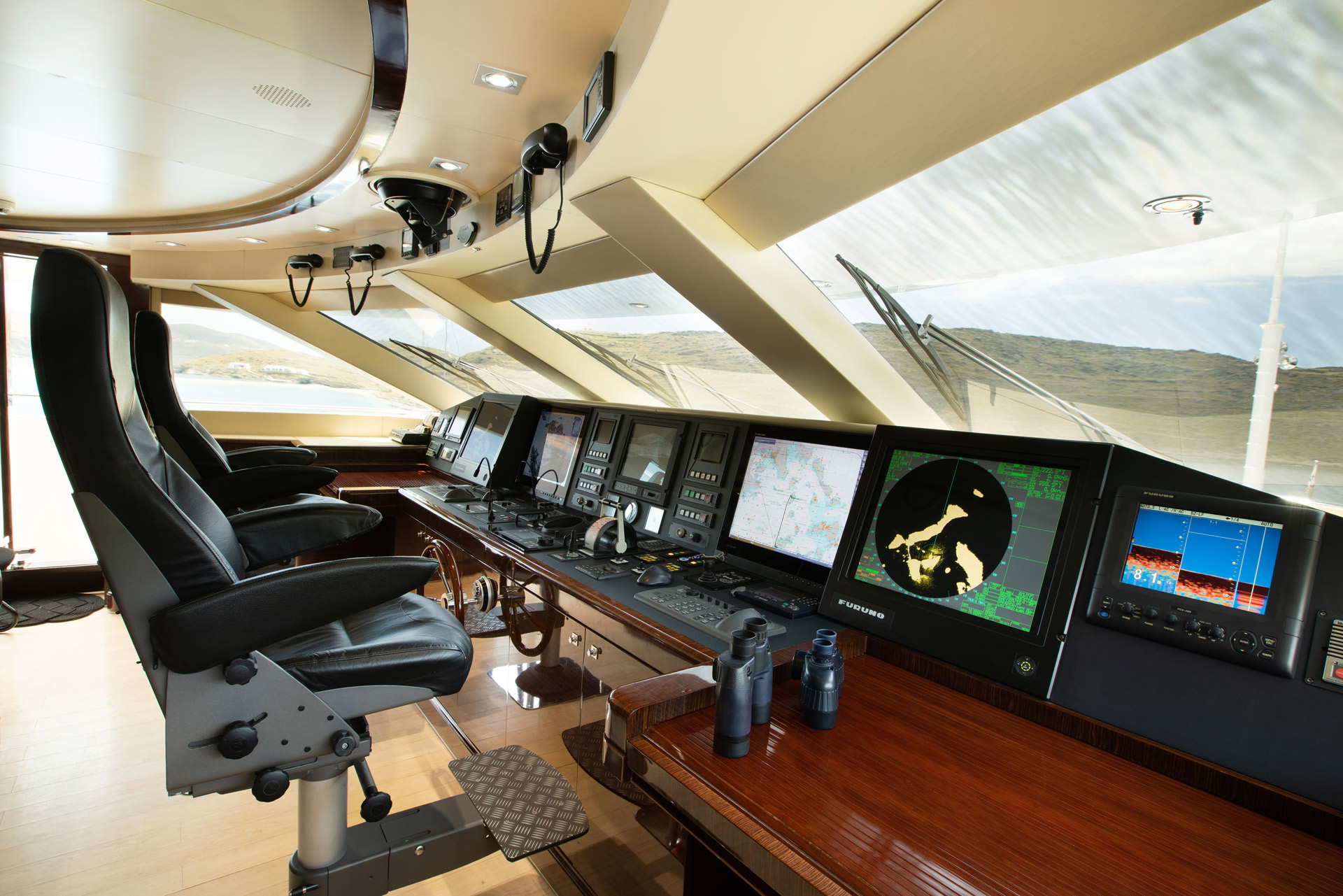 To the aft, the stately main salon is ideal for welcoming visitors or for resting together after a busy day: Two oversized sofas and armchairs receive plenty of light from the windows and there are numerous lamps to enhance the ...