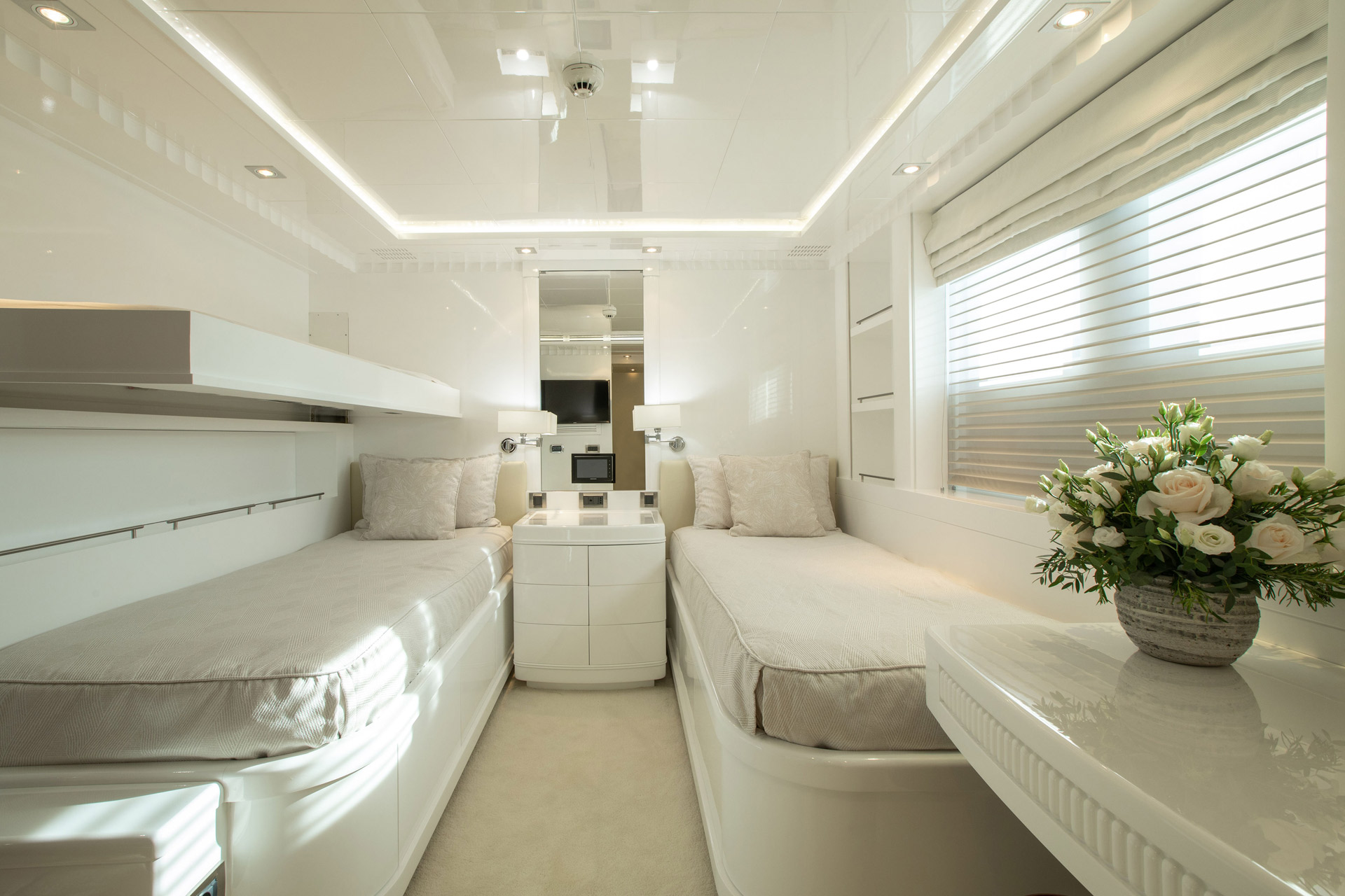 Her accommodation sleeps up to 12 charter guests over seven cabins while a crew of 11 ensure impeccable onboard service and attention to guests' requirements and details.