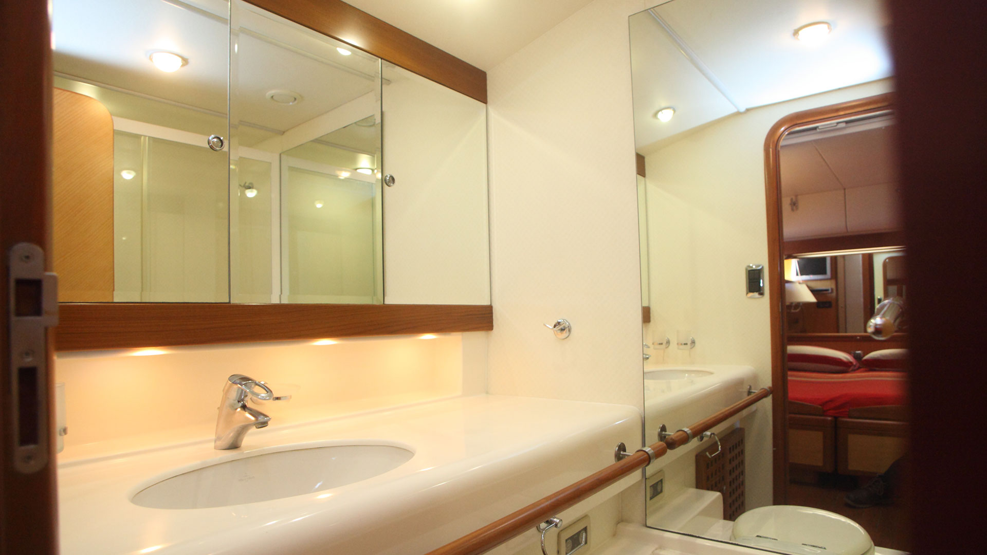 Below decks she has a contemporary timeless ambiance, with warm woods of Wild Cherry and Maple, and bespoke soft furnishings.