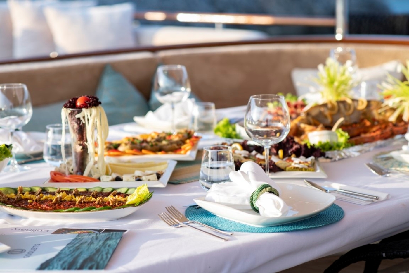 NOTABLE FEATURES OF DRAGONFLY: ~ Vast sunbathing & dining areas on deck ~ Water toys ~ Wi-fi ~ Excellent English-speaking crew