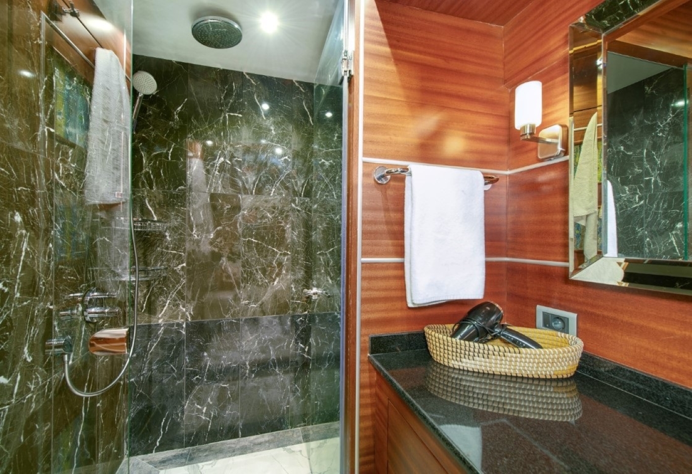 Accommodation is offered to ten guests in five cabins, including three double cabins and two twin cabins, all with en suite bathroom facilities. Tenders & Toys: