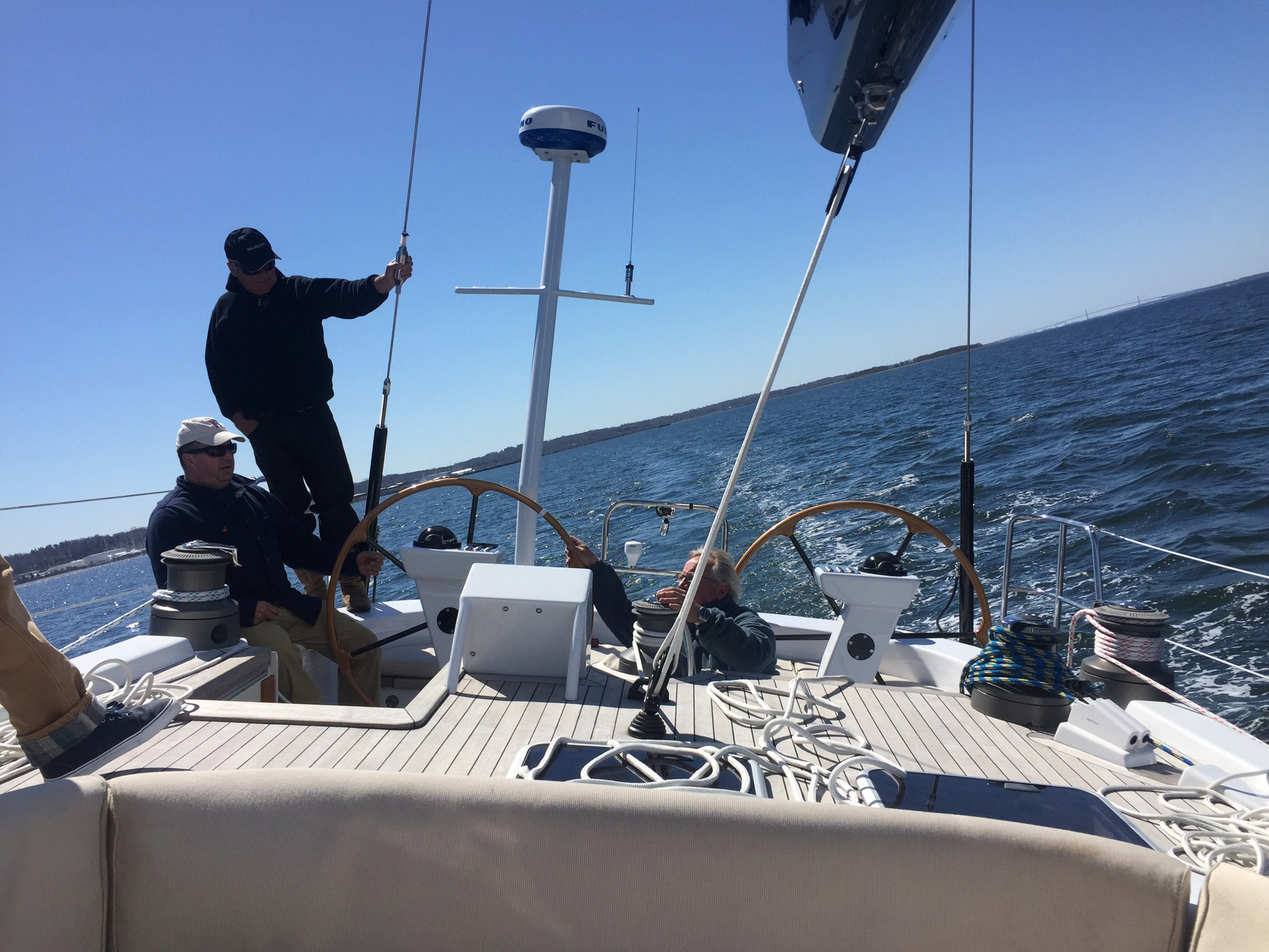 The foredeck has sunpads between the masts for guests to lie out and take in the sunshine and ambiance of the ...