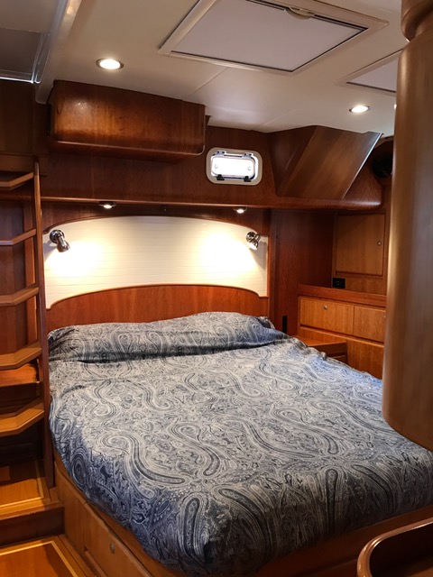 The Master suite makes use of the full beam to provide a spacious interior fitted with a king-sized bed and sofa that can be used as a bunk for a child. The en-suite bathroom provides a sink, toilet and shower.