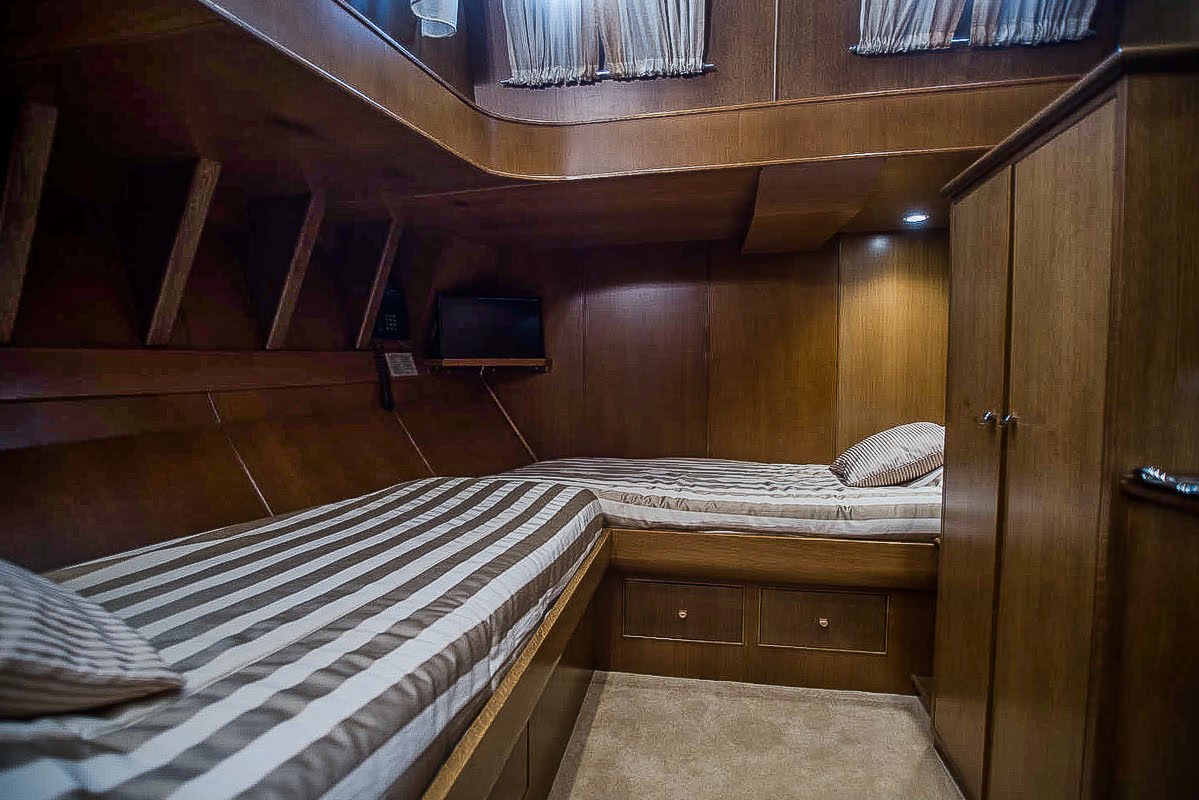 These comprise of a master suite, 2 double cabins, 2 twin cabins and 1 Pullman bed. All cabins include a DVD player and satellite TV. Arktos is capable of carrying up to 5 crew onboard who ensure a relaxed atmosphere for guests. There’s timeless styling, delightful surroundings, comfort and plush seating featured in every cabin.