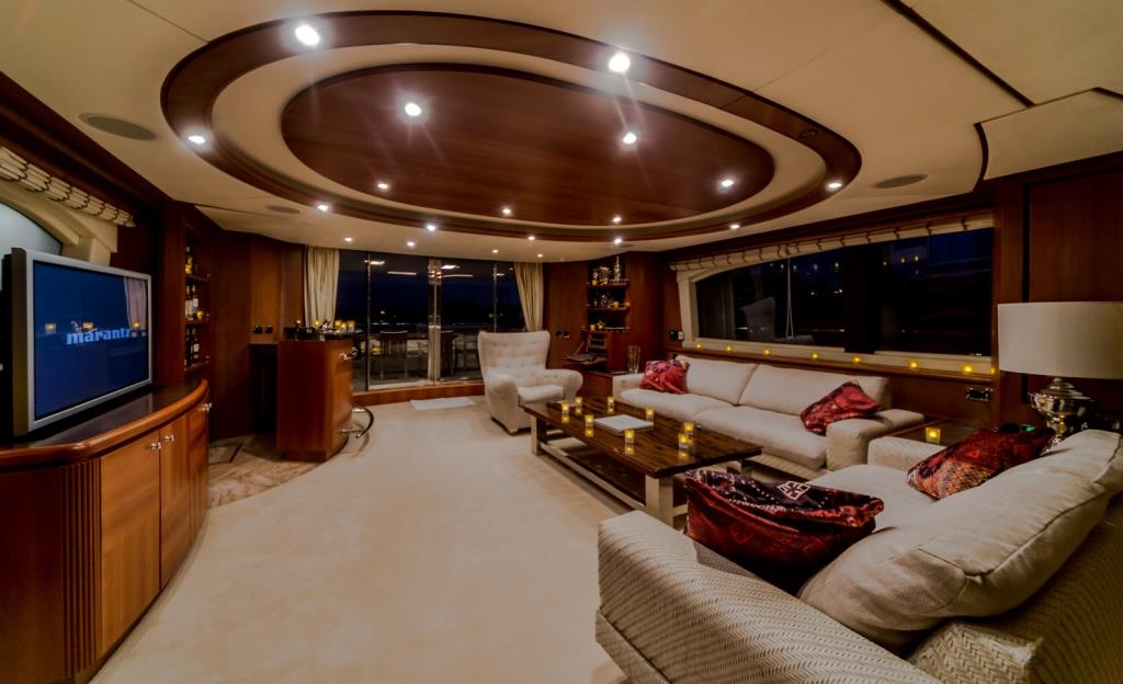 The yacht features a contemporary open plan salon and dining, with a spacious lounge aft and formal dining forward. The decor is neutral with light toned soft furnishings and warm woods. Below decks are 4 cabins, each offering private en-suite facilities.