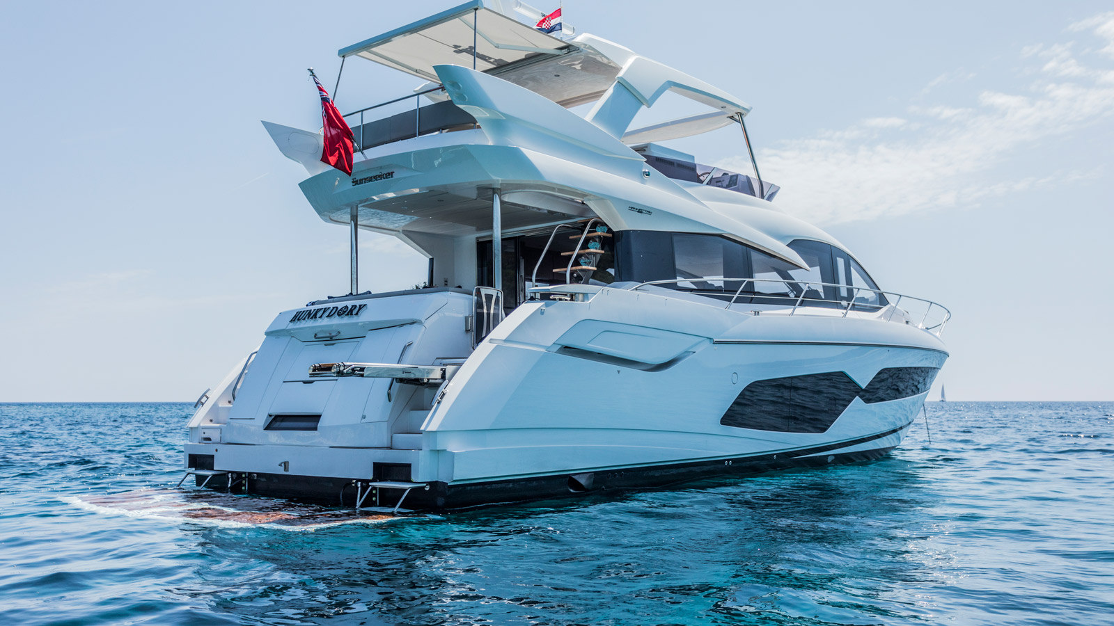NOTABLE FEATURES for HUNKY DORY OF: Contemporary light yet elegant interior décor ~ Open plan salon and dining ~ Full beam master and VIP cabins ~ Two alfresco dining options ~ Generous sundeck ~ Extended swim platform ~ Fast ...