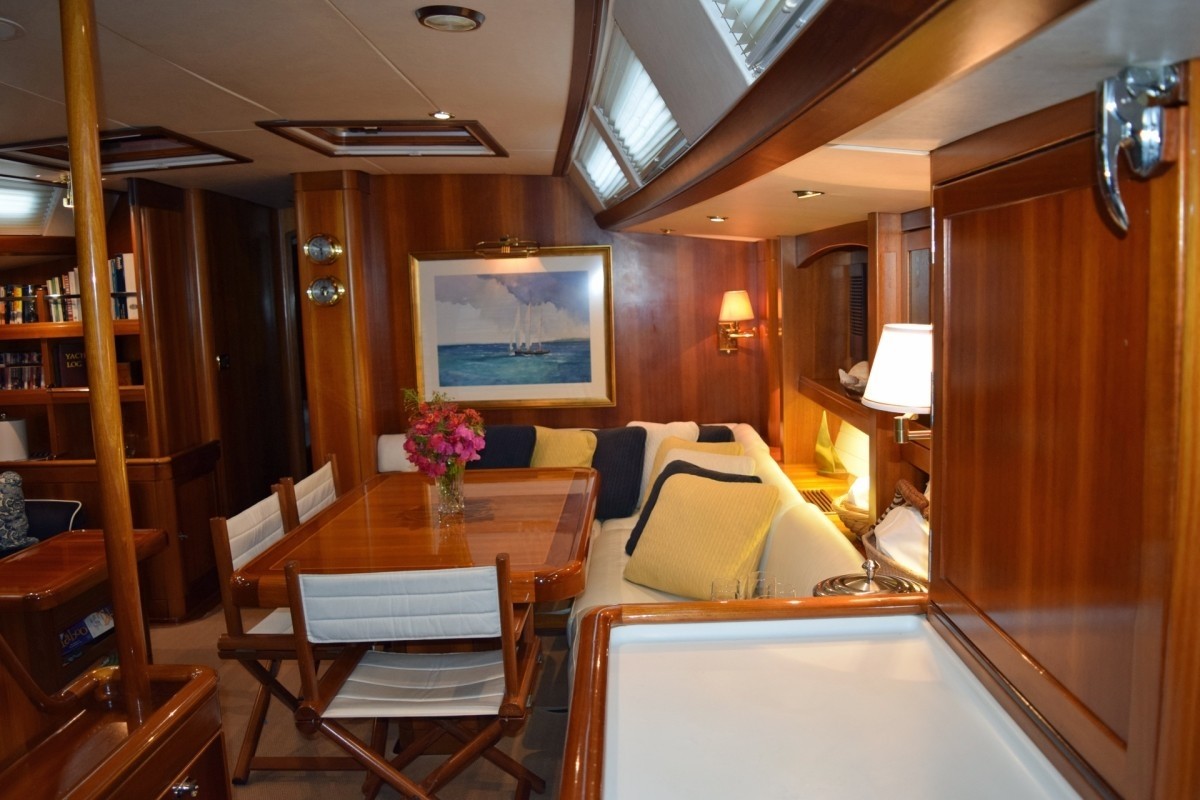The salon features a dining and a socialising area. Professional chef onboard cooks gastronomic delights taking into consideration guests' preferences.