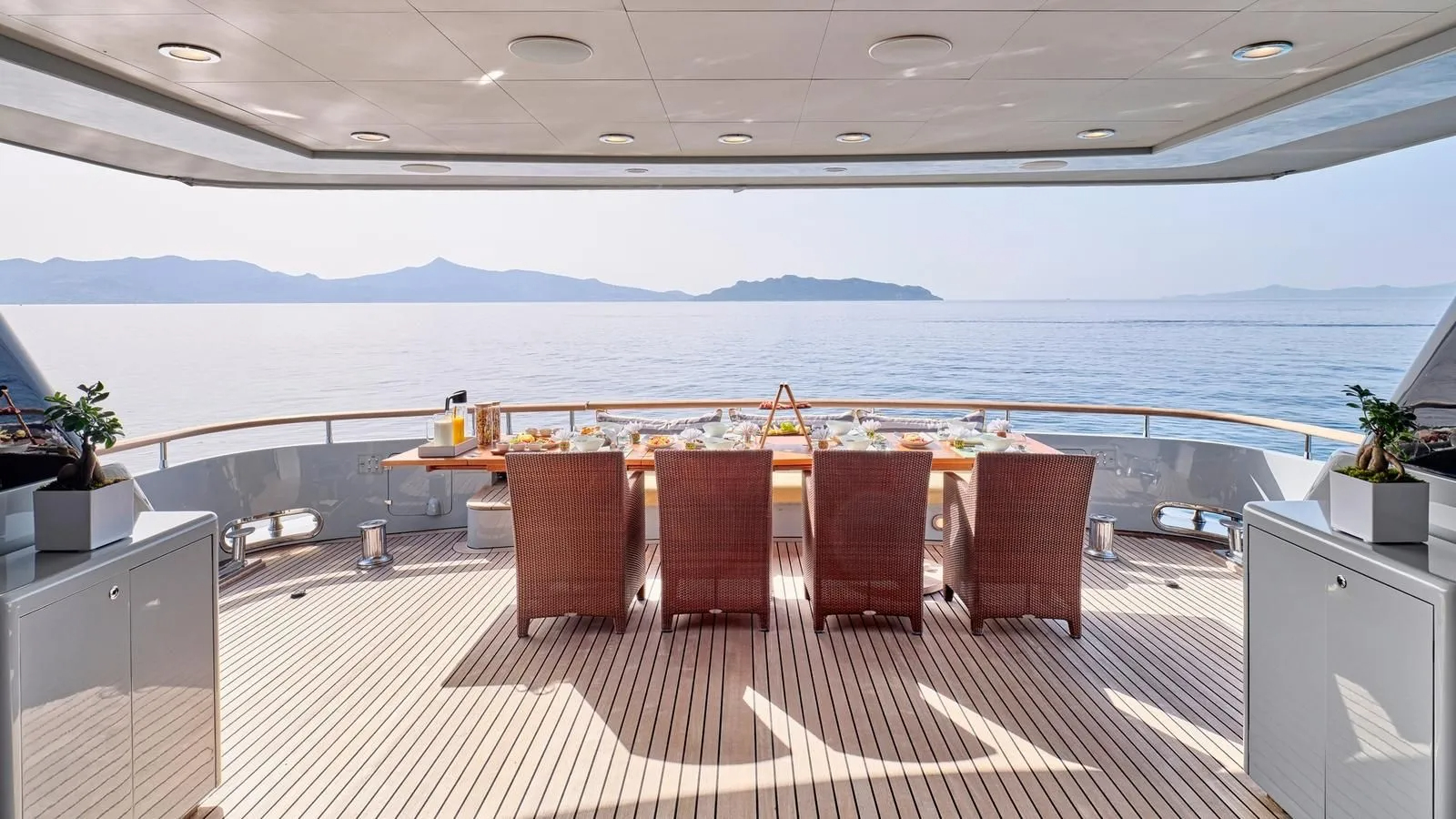 The VIP cabin is on the main deck, forward of the salon, offering a king size bed and large en-suite. Below decks, aft of the master cabin, are 2 double cabins, each with queen size beds and 2 twin cabins, both with side by side single beds and an upper Pullman berth each.