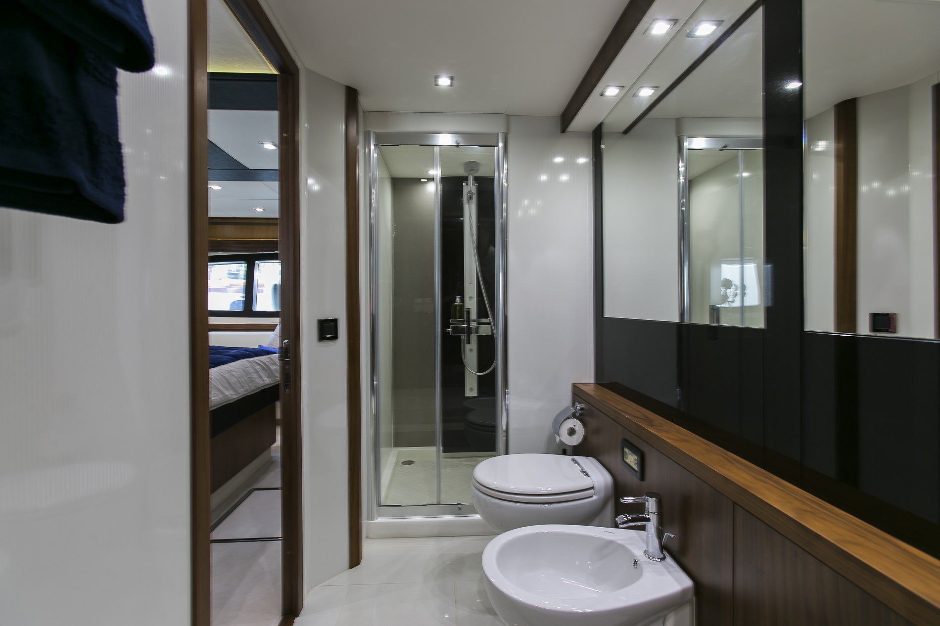 The salon also provides access to the lower deck accommodation, which includes 4 large cabins, all ensuite for the comfort of up to 8 guests.