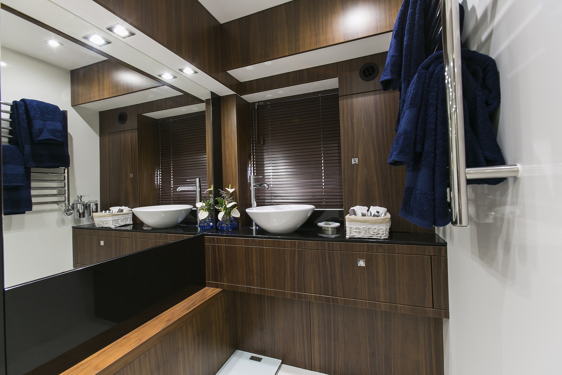 The salon also provides access to the lower deck accommodation, which includes 4 large cabins, all ensuite for the comfort of up to 8 guests.