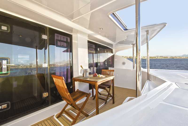 2 main staterooms have access to a huge forward cockpit.