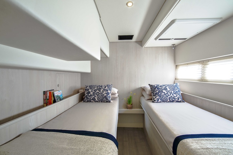 She offer luxury crewed yacht charters for up to 10 charter guests, in 5 double cabins. 5 luxury double staterooms feature all private-en-suite bath.