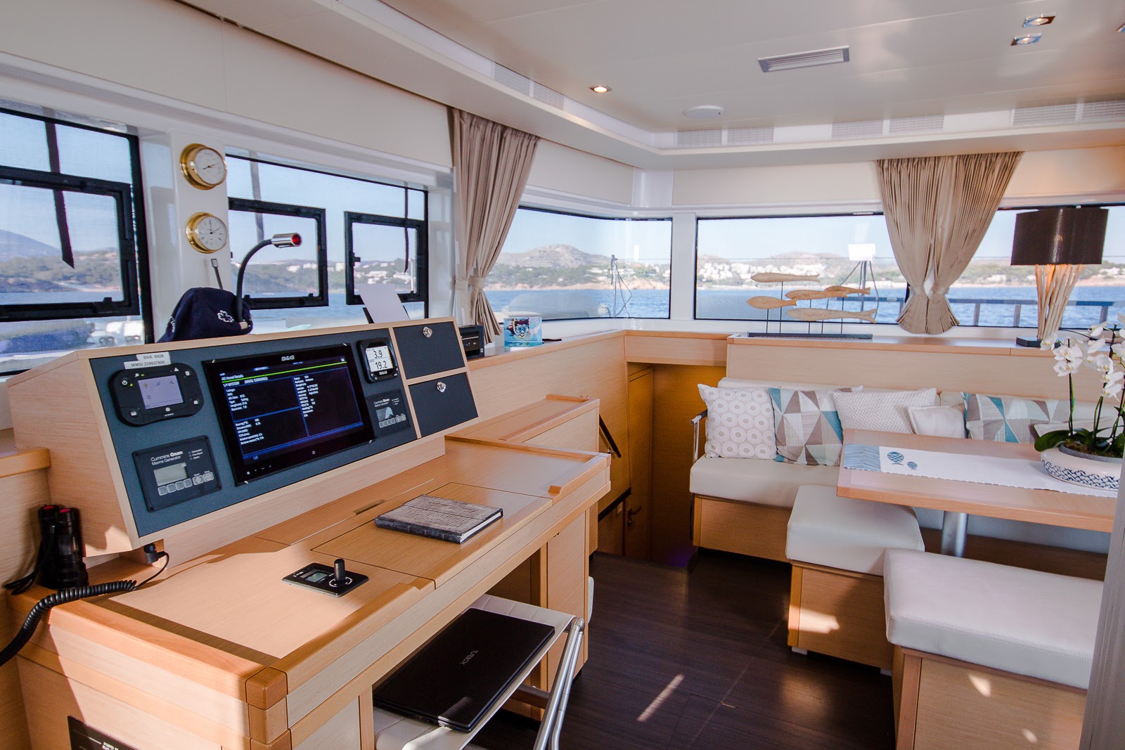 The foredeck is fitted with a spongy seating area and two trampolines provide an area to exercise, sunbathe and take in the views.