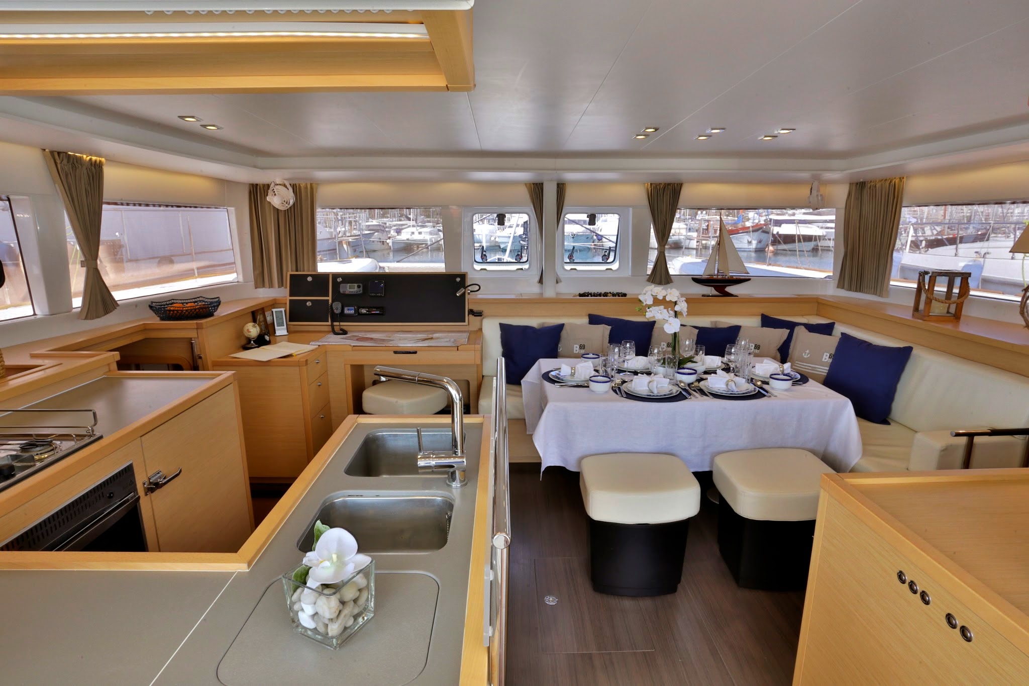 Sailing catamaran NEW HORIZONS is a 14m (45,11ft) Lagoon design with launch in 2014. The yacht offers accommodation for 8 charter guests, in 4 cabins and has a crew of 2.