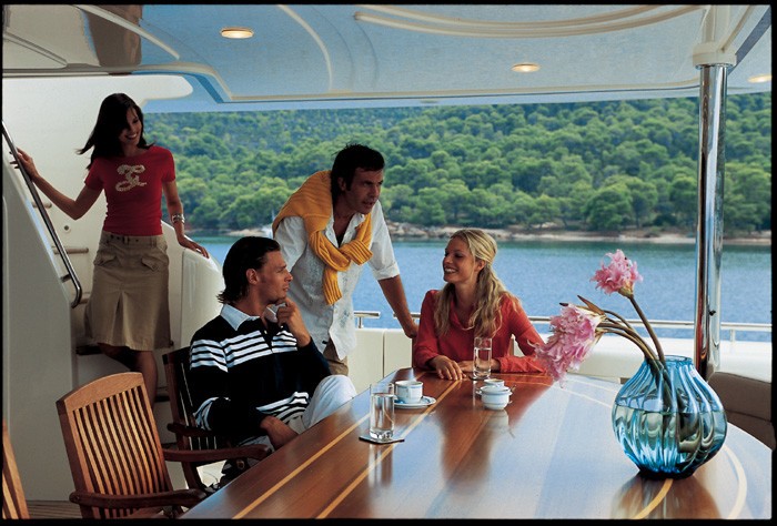 Greece (Athens) based luxury motor yacht Pandora is a 2005 model Ferretti 112 luxury motor yacht with 5 cabins for up to 10 charter guests. Pandora is capable of a fast cruising speed fast and she is fantastic charter yacht for a Greece or Turkey Easter Mediterranean vacation.