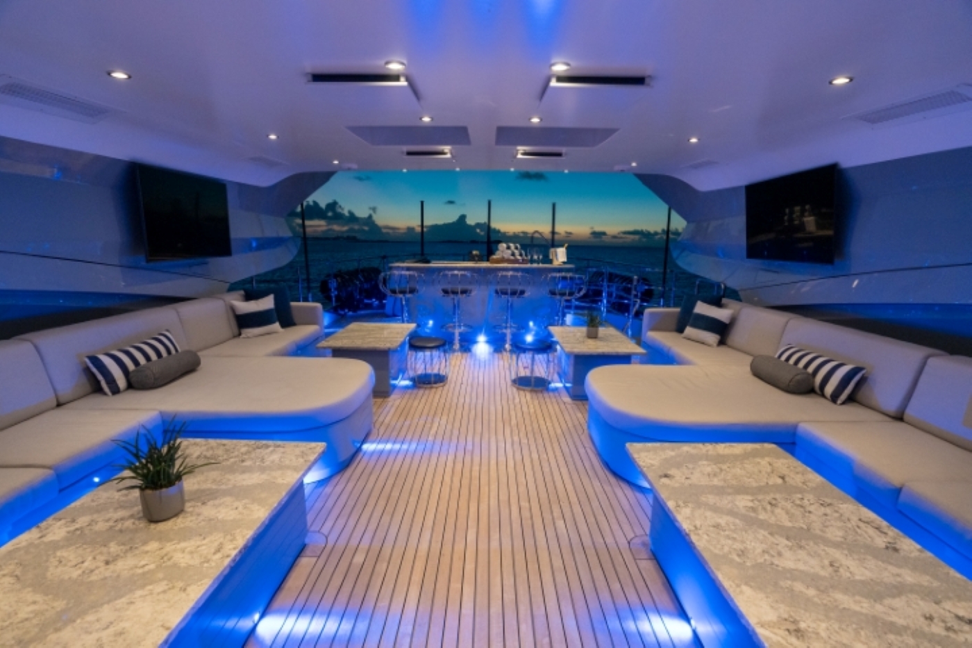 Featuring a semi-custom sports design, the vessel offers a sophisticated style and impressive amenities, modern interiors by Evan K Marshal and exterior styling by Nuvolari Lenard. She can provide accommodation for up to ten guests in five cabins.