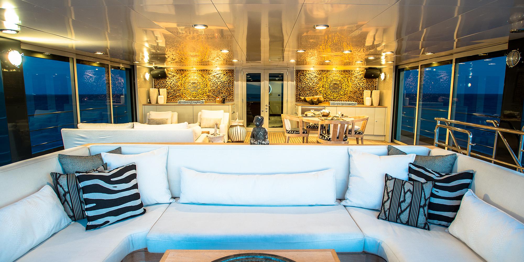 Located on the main deck, the owner's master suite is almost a full-beam size and boasts large closets, desks, and seating. Guest accommodation comprises of two grand and two smaller double cabins.