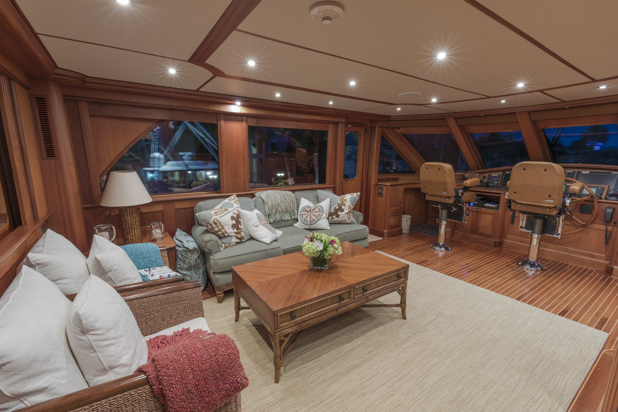 Accommodation is for six guests in three staterooms consisting of full beam master suite finished in sapele mahogany and earth tones, along with two VIP staterooms with queen sized beds. All staterooms have television screens and en suite bathroom facilities.