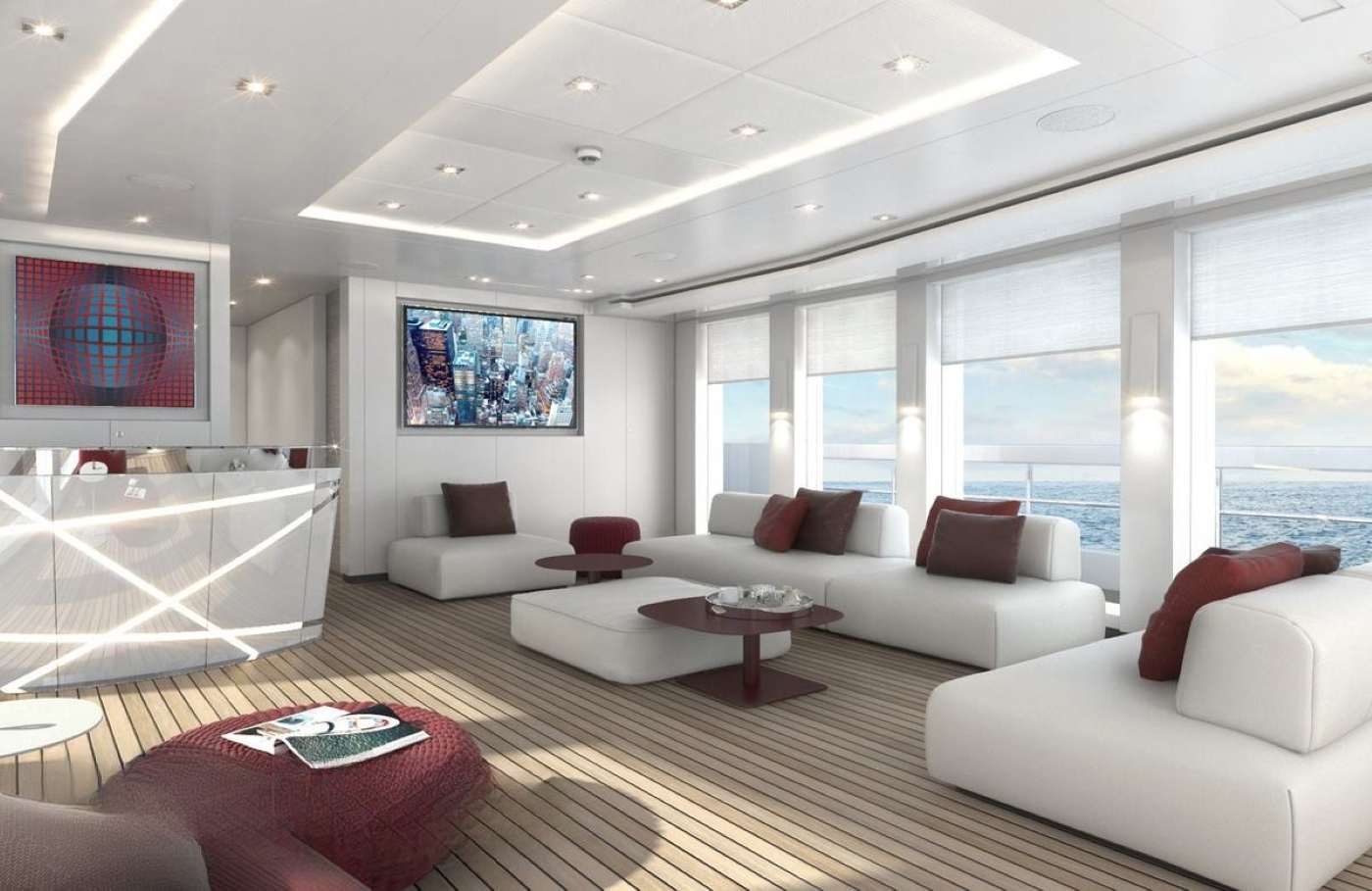 On the main deck of the luxury motor yacht Home, there is a spacious main salon with comfortable seating and dining areas. The lower deck has a fully equipped gymnasium and an engine room. The sundeck is a fantastic area for unwinding and leisure: there are a large wet bar and a spa pool for the guests to enjoy luxury cruising to the fullest.