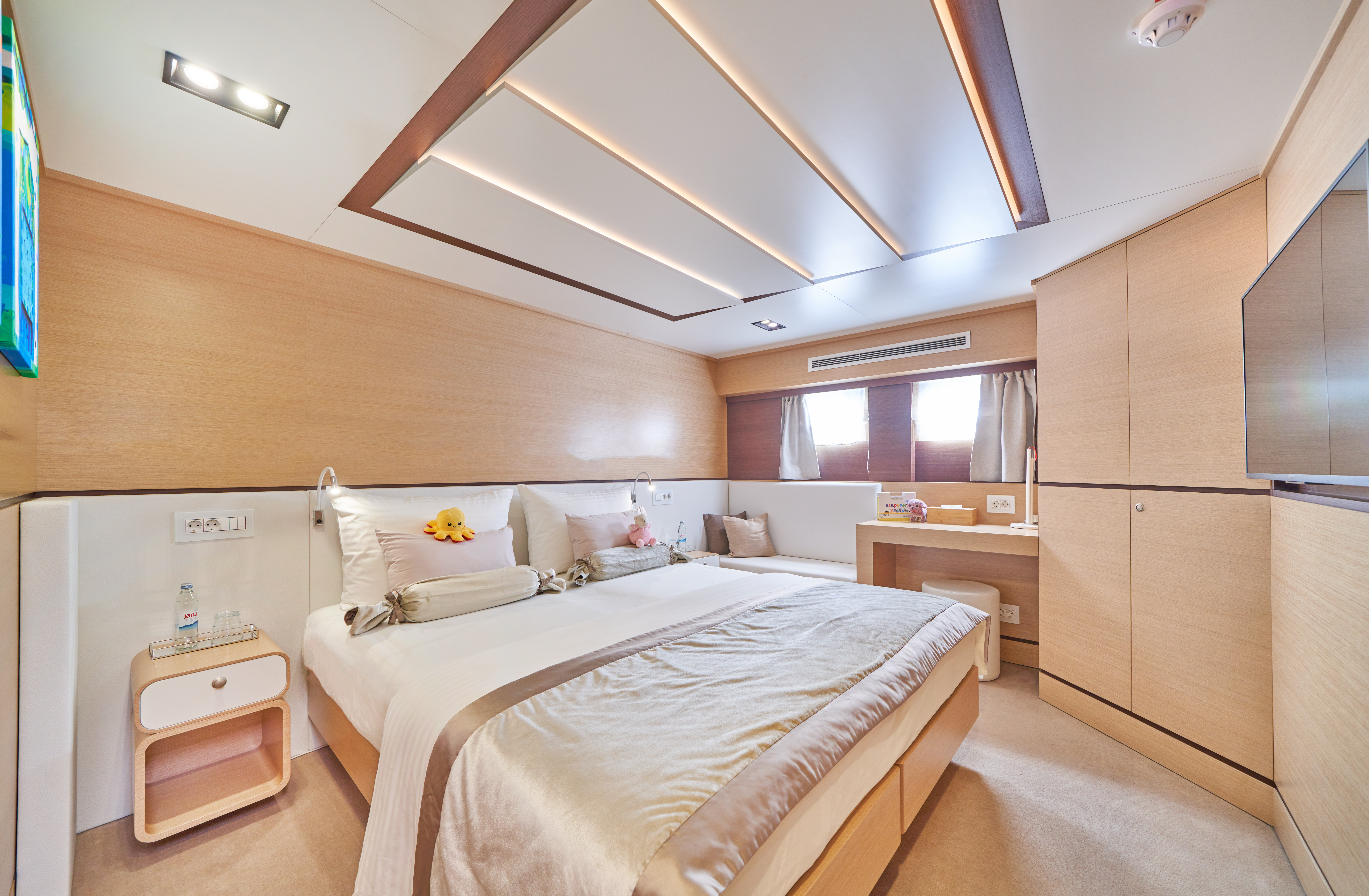 NOTABLE FEATURES for OMNIA: ~Huge sun deck with jacuzzi ~Several al fresco dining settings ~Exciting collection of water toys ~Sauna ~Contemporary interior decor ~Six staterooms including two full beam suites ~Air conditioning ...