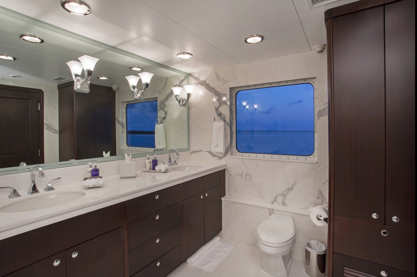 The owner's master suite is located on its private deck and includes a king-size bed, a large wardrobe and a master ensuite with two showers and two sinks. Four well-appointed guest cabins are on the lower deck, including two double guests cabins and two triple.