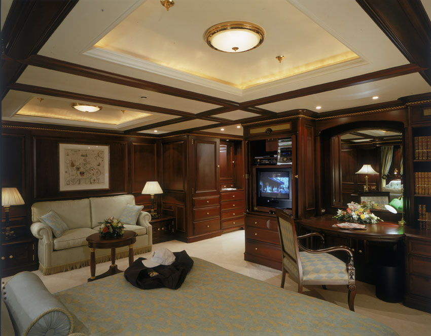The ensuite's decor was finished using opulent materials and features his and hers areas. On this deck, there are also dedicated salon, dining area and study, as well as two further family cabins.