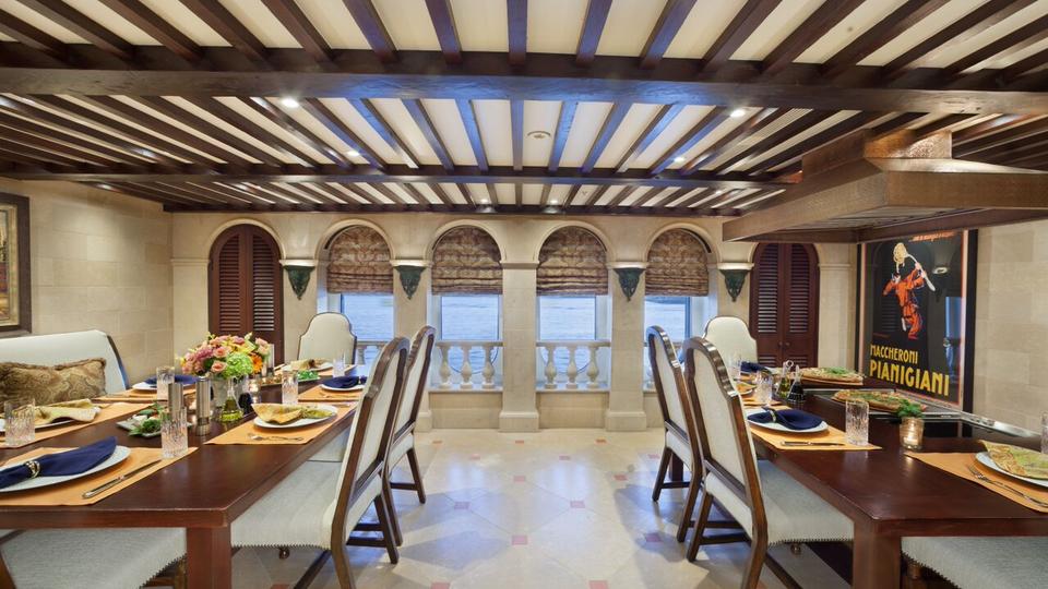She boasts interior design and decor by the famous English designer John Munford. Her exterior profile is a work of Stefano Natucci. FREEDOM is a very impressive, exclusive and unique charter yacht, offering accommodation for up to 12 guests in 8 cabins.