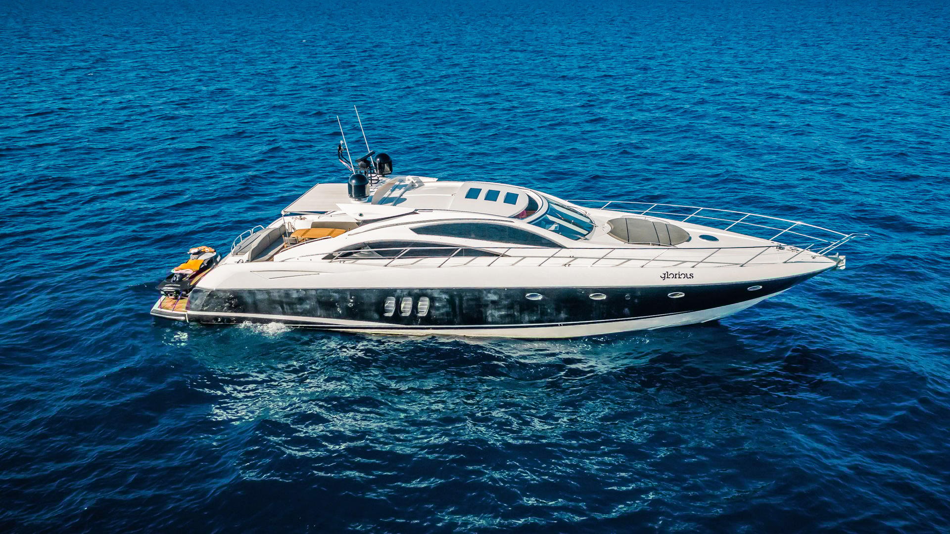 Motor yacht GLORIOUS (Ex Szimona) was launched by the well-known Sunseeker shipyard in 2006 and refitted in 2024. She offers accommodation for 8 charter guests and 3 cabins.