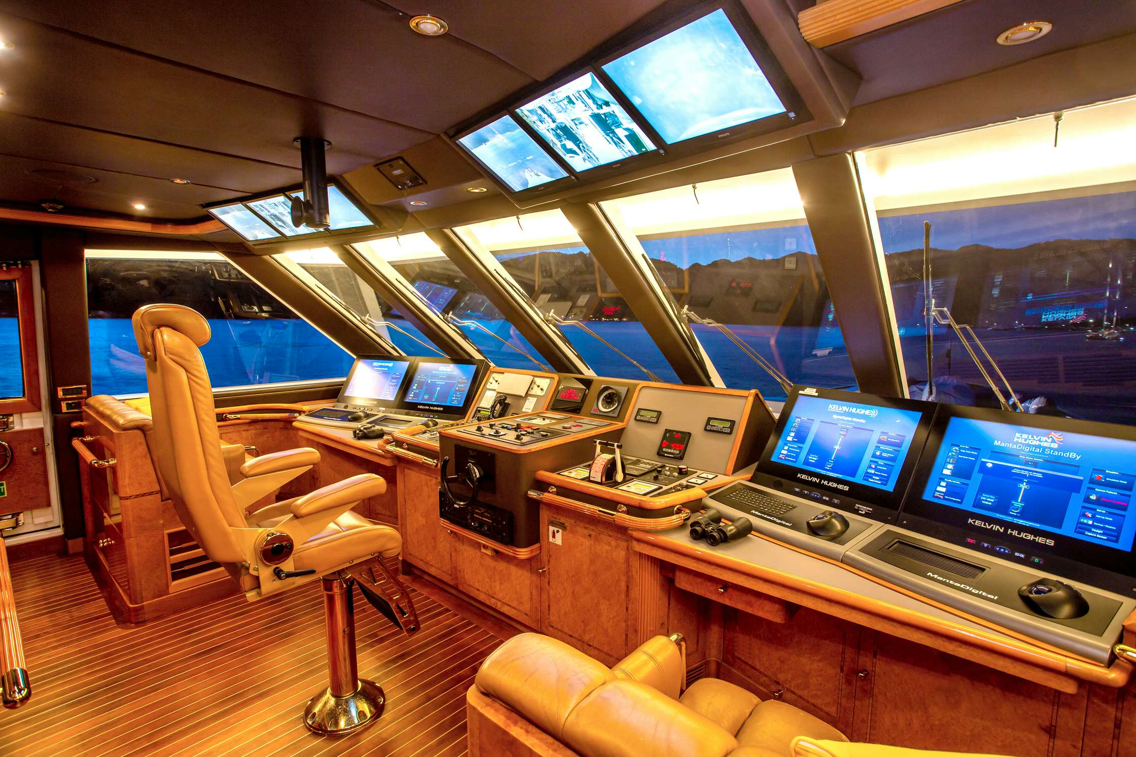 The main deck provides a generous salon with plush furnishings and large panoramic windows, providing spectacular views and plenty of natural light.