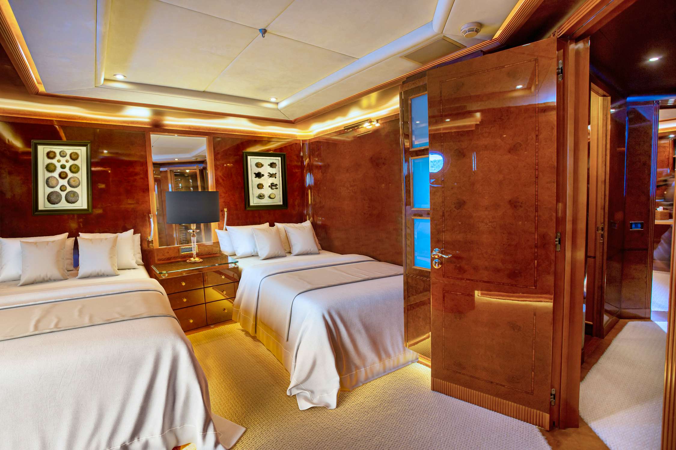 The master's full-beam ensuite offers a powder room area, shower and dual sinks. On the upper deck is a sky lounge, boasting a fabulous custom seating area, with coffee tables and ottomans.