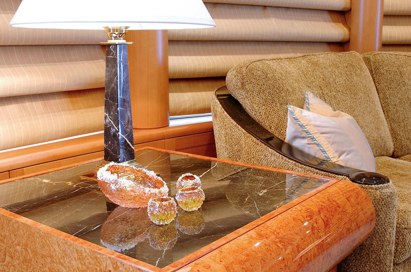 With an interior designed by Glade Johnson, her sweeping views evoke an elegant ambiance.