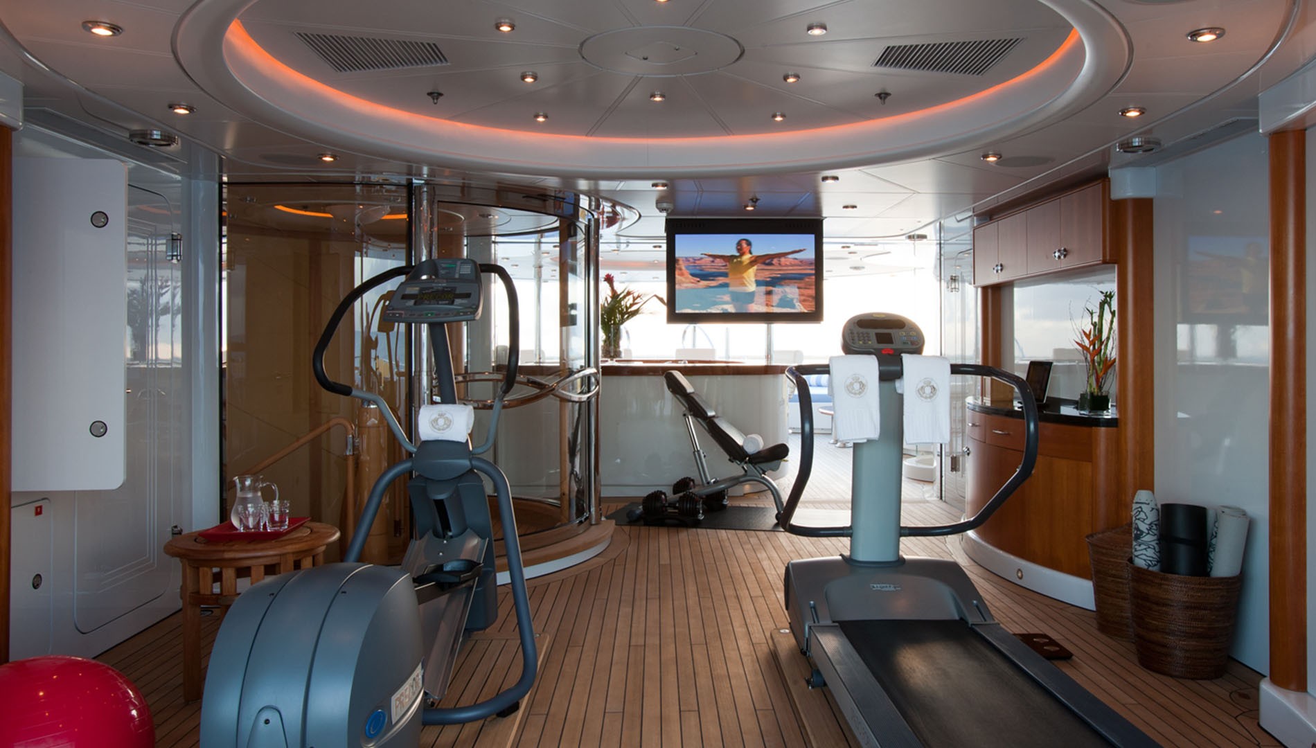 NOTABLE FEATURES: ~ Gym ~ Jacuzzi ~ Bbq ~ Open-air dance floor ~ Bar ~ Cinema ~ Steinway piano ~ Personal trainer ~ Beach house ~ Water toys ~ In excellent condition ~ Zero-speed stabilizers