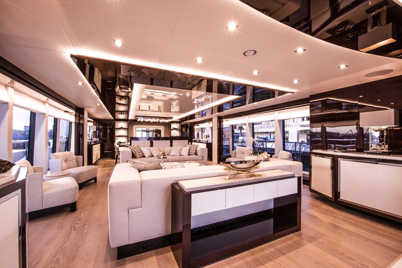 An upper sky lounge offers a further lounge, seating area and wet bar.