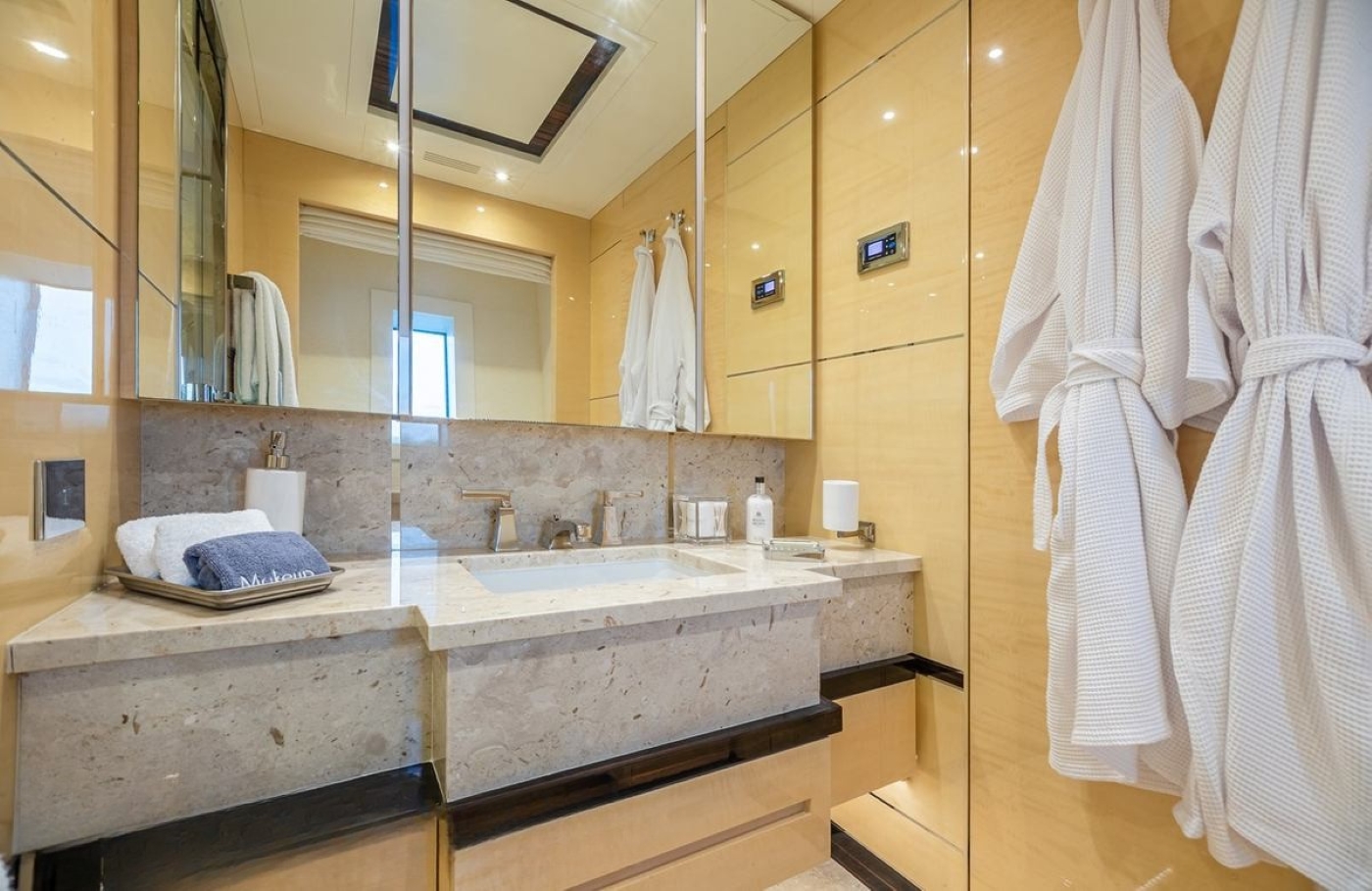 The accommodation spread over five lovely cabins with luxurious en-suite bathrooms. The configuration includes the master suite, three double cabins and one twin cabin with an additional Pullman berth.