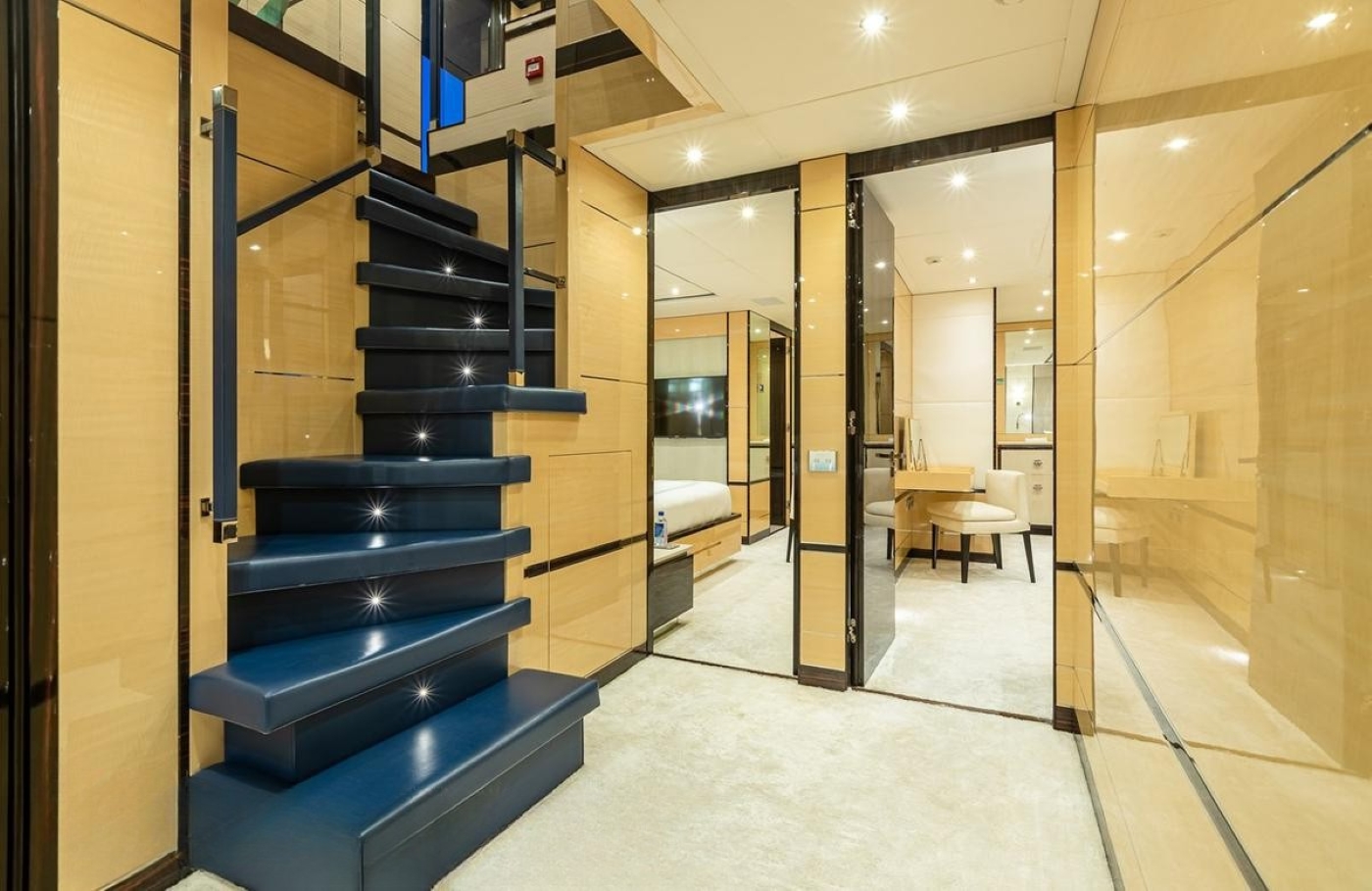 One of the main features of this vessel is her innovative Rolls Royce Azipull Carbon 65 propulsion system, as well as her carbon and epoxy resin superstructure that is 40% lighter than usual. The yacht offers accommodation for up to 10 guests over a five-cabin layout with ensuite facilities.
