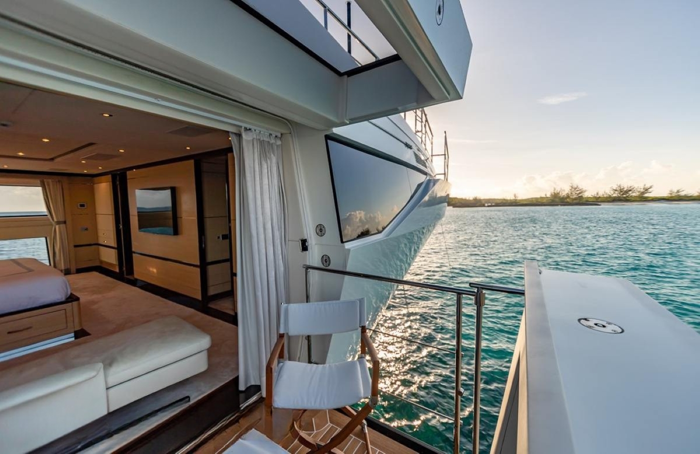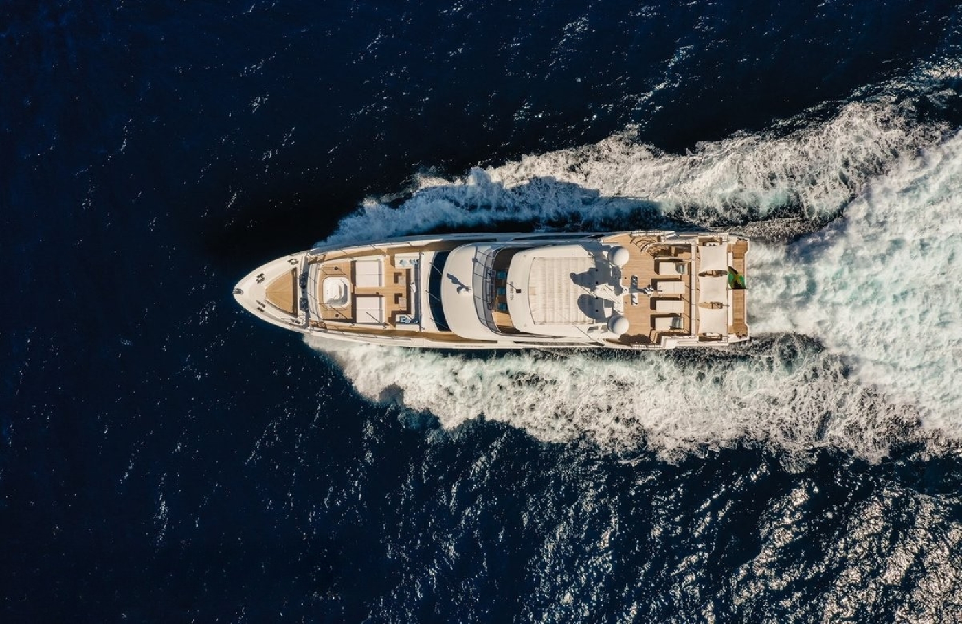 The yacht offers accommodation for up to 10 guests over a five-cabin layout with ensuite facilities. There is also a crew of 7 on board.