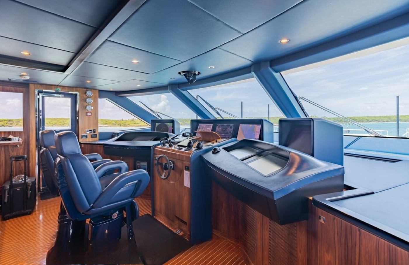 The yacht offers accommodation for up to 10 guests over a five-cabin layout with ensuite facilities. There is also a crew of 7 on board.