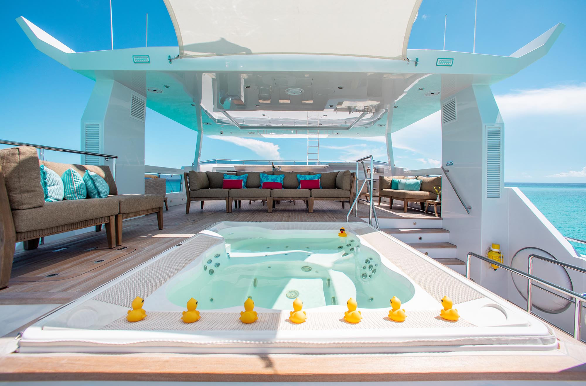 Swim in the pool located on the sun deck then sunbathe on the relaxing sun lounges. To cool off spend some time in the sparkling flybridge Jacuzzi.