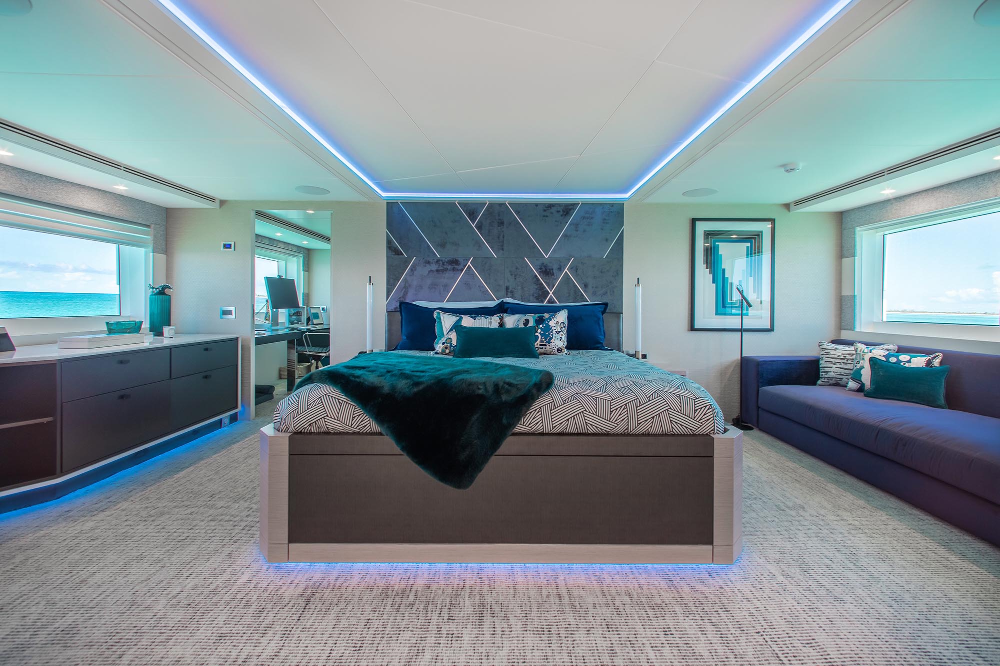 Notable features for CURFEW II: vast exterior spaces - flybridge Jacuzzi - state-of-the-art entertainment system - futuristic and ...