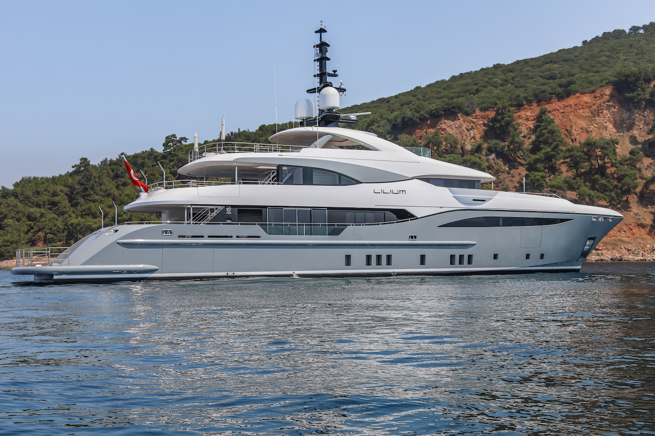 She features the naval architecture and exterior styling of Unique Yacht Design, while the interiors are the work of İlkay Dovan from the shipyard in-house team. Spanning four decks, her amenities include two Jacuzzis and a wet bar as well as numerous alfresco dining and lounging areas.